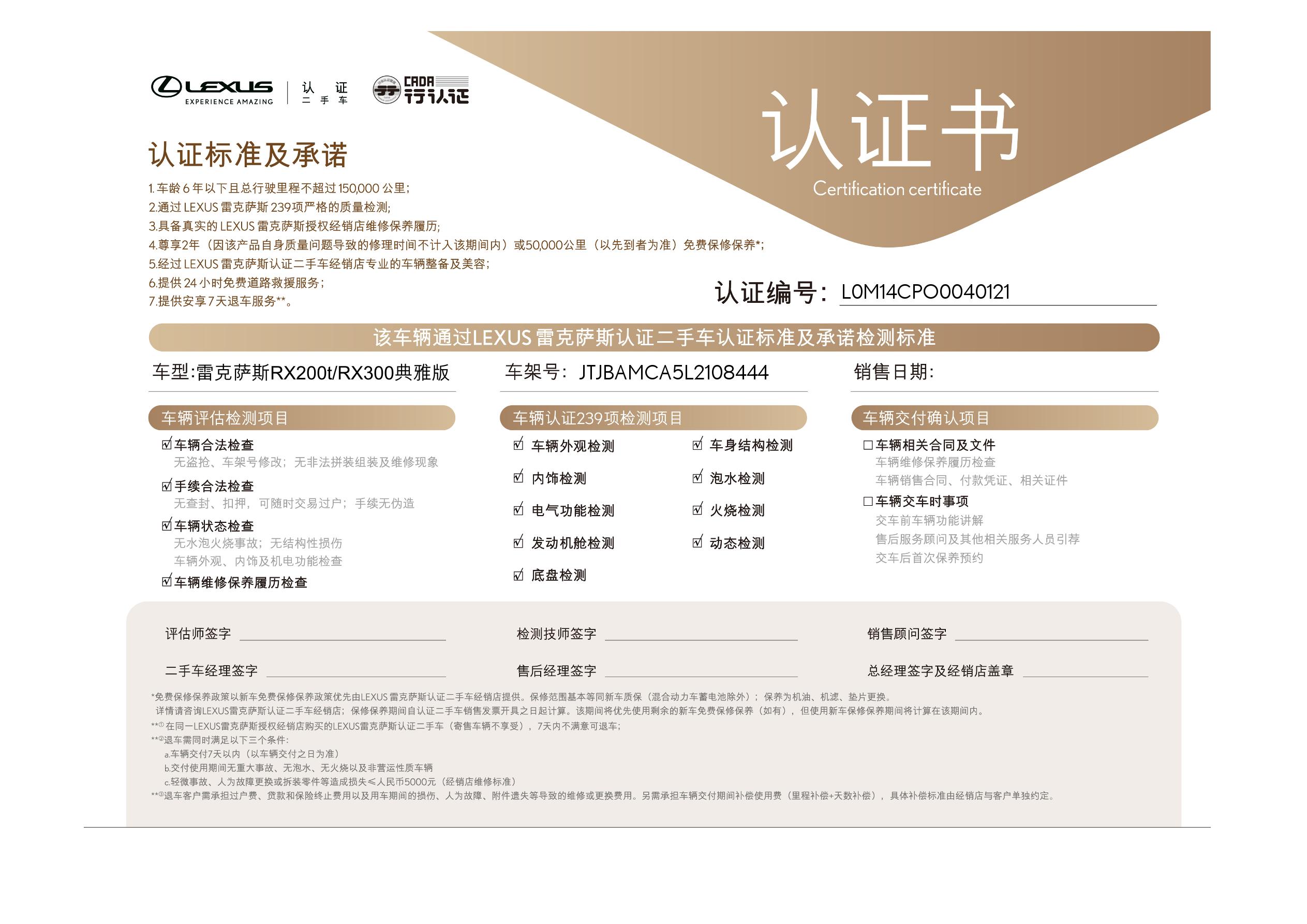 稍后我们将通过当地 LEXUS 雷克萨斯中国授权认证二手车经销商